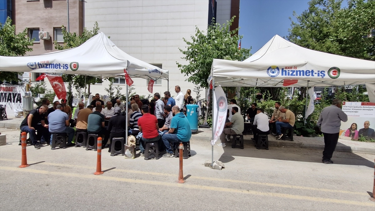 İpekyolu Belediyesinde işten çıkarılan belediye çalışanları, belediye önündeki eylemlerine devam ediyor.