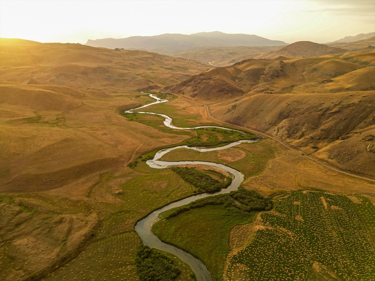 VAN (AA) - Yaylaları, geniş meraları, gölleri, akarsuları ve ovaları ile dikkati çeken Van'ın Gürpınar ilçesindeki menderesler, kilometrelerce uzanan kıvrımlı yapısıyla dikkati çekiyor.