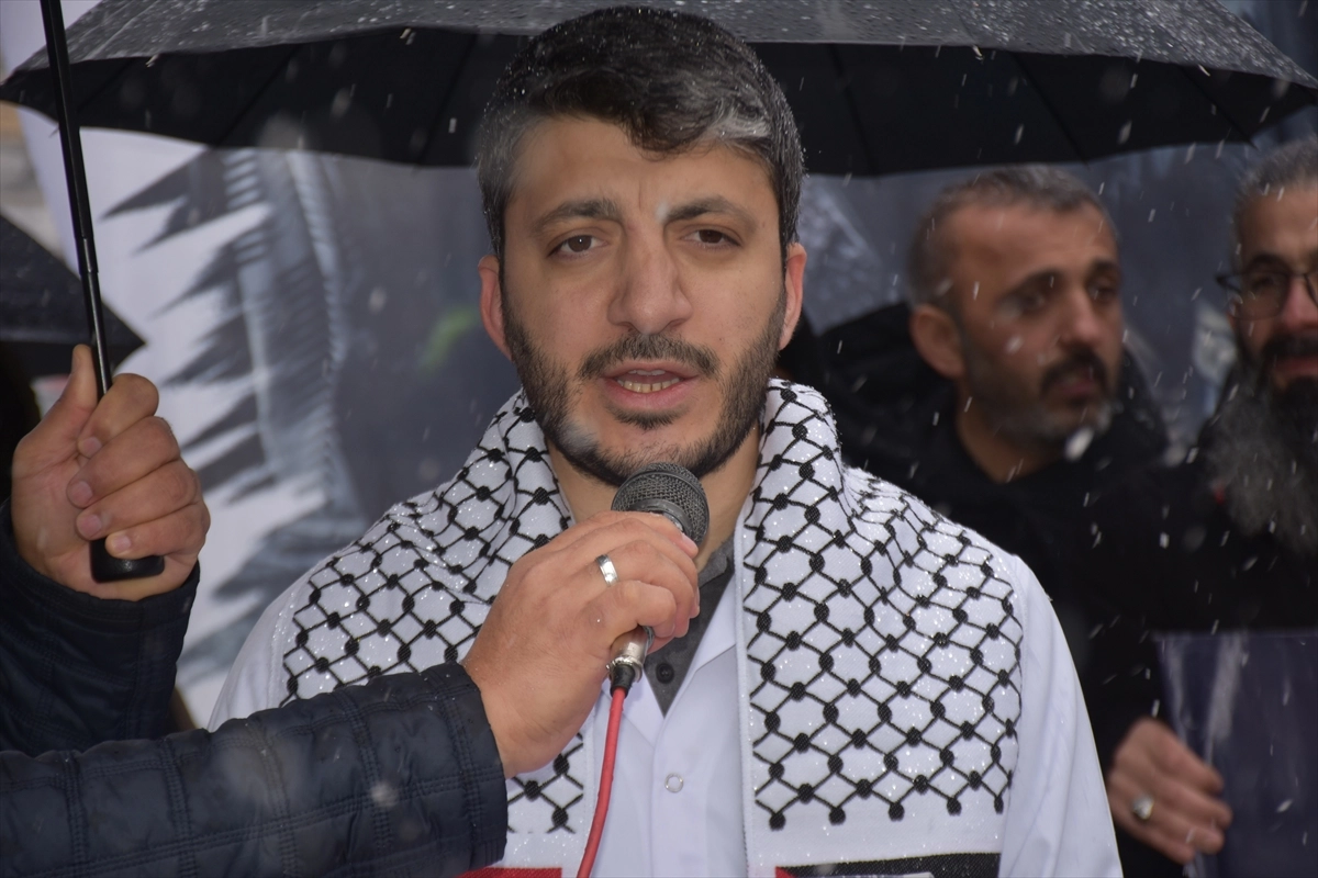 İsrail'in saldırılarına tepki gösteren sağlık çalışanları adına açıklama yapan doktor Recep Durmaz, Filistin'de işgal, katliam ve soykırımın devam ettiğini hatırlattı.
