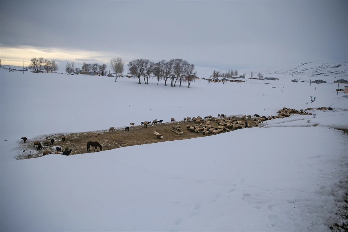 Kar kalınlığının yer yer üç metreyi bulduğu, kış boyunca tipi ve karın etkili olduğu mahallede yaşayan Emrah ve eşi Elmas Sarı ise geçim kaynakları olan küçükbaş hayvanları için evlerinden ayrılmıyor.