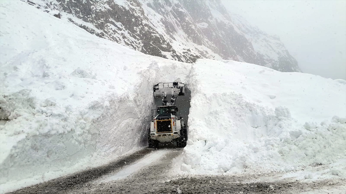 Bunun üzerine çalışma başlatan İlçe Özel İdaresi ile Karayolları ekipleri, yolda metrelerce yükseklikteki kar yığınını temizlemeye çalışıyor.