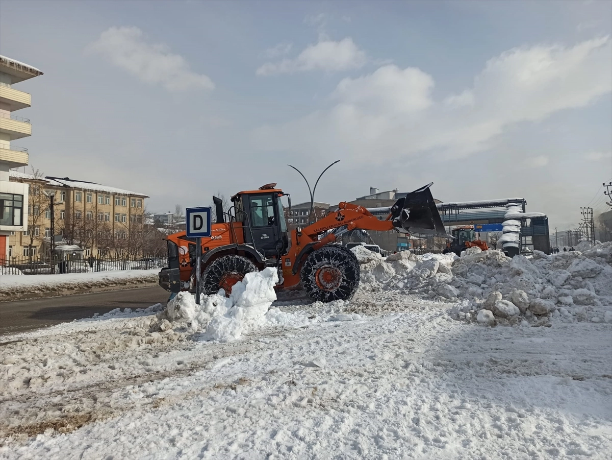 Ekipler, kar kalınlığının 1 metreyi bulduğu ilçe merkezindeki okul güzergahlarındaki karları da temizlemek için çaba sarf ediyor.