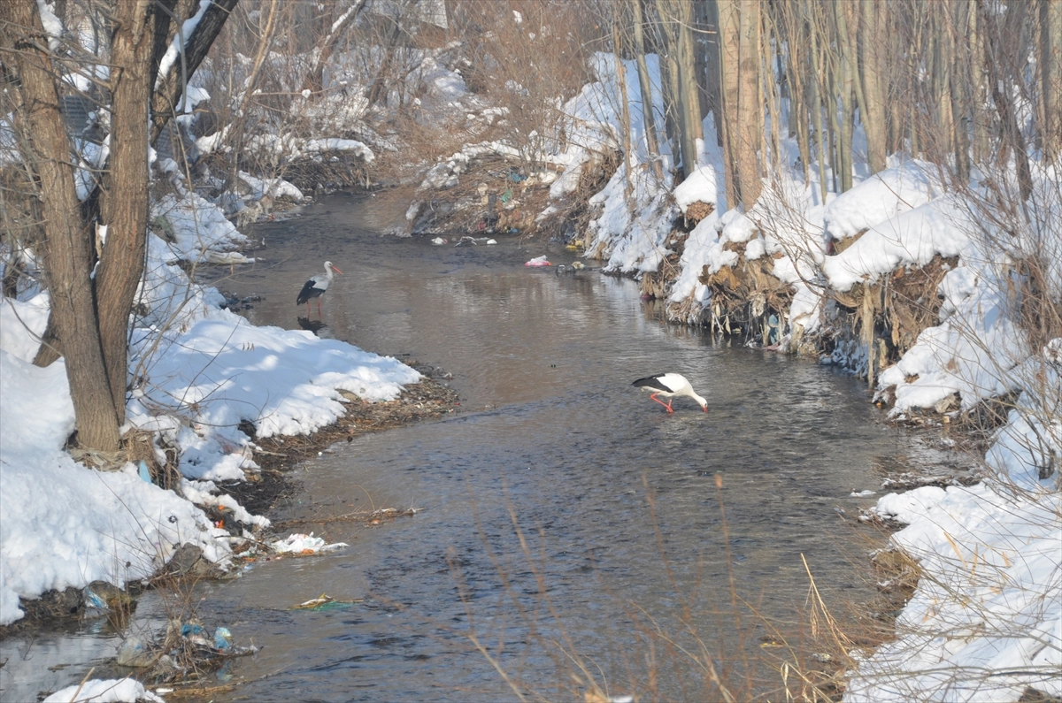 Kar ve dondurucu soğuğa rağmen bölgede kalan leyleklerle yakından ilgilenen köy sakinleri, bazen evlerinden getirdikleri yemekle bazen de satın aldıkları balıklarla kuşları besliyor.