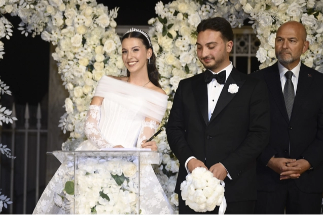 Beykoz’daki Mecidiye Kasrı’nda düzenlenen nikâh töreni, Diyanet İşleri Başkanı Ali Erbaş’ın duasıyla başladı. Nikâhı İstanbul Milletvekili Tevfik Göksu kıyarken, evlilik cüzdanını çifte TBMM Milli Savunma Komisyonu Başkanı Hulusi Akar takdim etti.