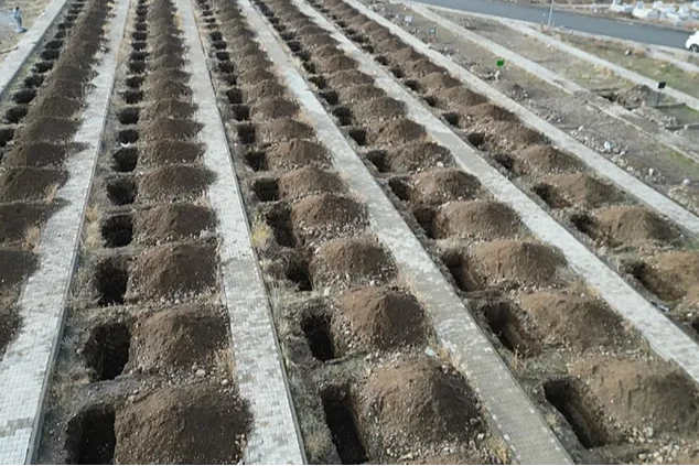 Erzurum Büyükşehir Belediyesi Mezarlıklar Müdürlüğü, şehir merkezindeki Asri Mezarlığı’nda iş makineleri ve personel eşliğinde kışlık mezar kazı çalışmalarını büyük ölçüde tamamladı. Yetkililer, derin don nedeniyle toprağın betona dönüştüğünü, bu nedenle defin işlemlerinin ancak önceden hazırlık yapılarak yürütülebildiğini belirtiyor.