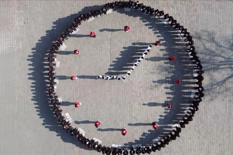 Okul bahçesinde toplanan yaklaşık 250 öğrenci, Atatürk’ün ebediyete intikal ettiği 09.05 saatini temsil eden anlamlı bir koreografi oluşturdu. Öğrencilerin bu görüntüsü, izleyenlere duygusal anlar yaşattı.