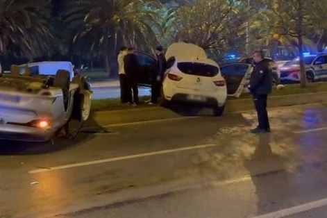 Çarpışmanın etkisiyle savrulan araçlardan biri orta refüje çıkarak ters döndü, bir diğeri refüjdeki kaldırıma çıkarak ağaçlara çarptı, üçüncü otomobil ise yol kenarındaki çelik bariyerlere çarparak durabildi.