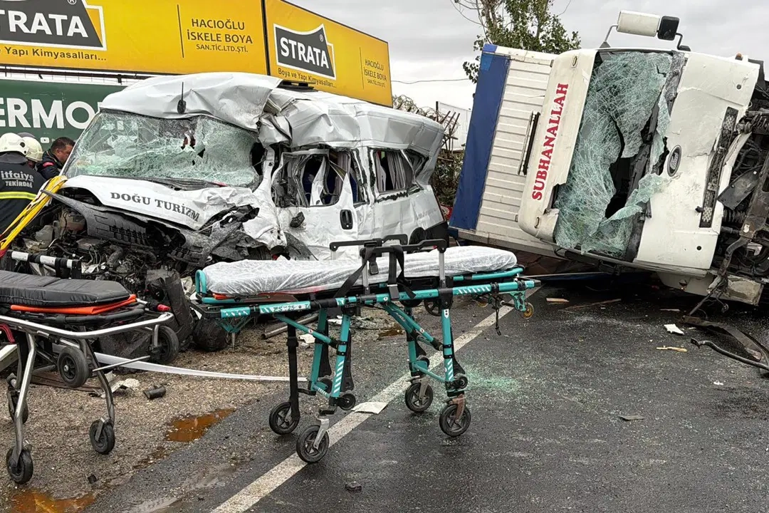 Tekirdağ’ın Ergene ilçesinde kamyonet ile işçileri taşıyan servis minibüsü çarpıştı. Velimeşe Mahallesi Avrupa Serbest Bölgesi yolunda meydana gelen kazada üç kişi hayatını kaybederken, dokuz kişi de yaralandı.