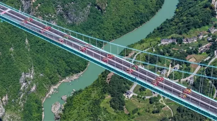 Beipan Nehri’nin 625 metre üzerinde yükselen dev yapı, San Francisco’daki Golden Gate Köprüsü’nden dokuz kat daha yüksek olmasıyla dikkat çekiyor. Ana açıklığı 1.420 metre olan köprü, mühendislik alanında bir dünya rekoruna imza attı.