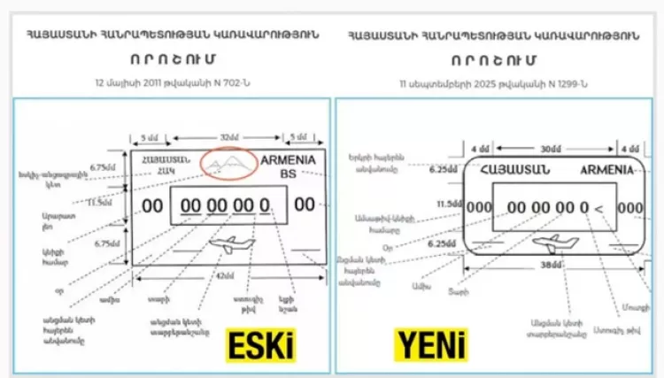 Ermenistan hükümeti, pasaportlara giriş-çıkış sırasında vurulan damgalarda değişikliğe gidiyor. 1 Kasım 2025’ten itibaren, damgalar üzerinde yer alan Ağrı Dağı simgesi kaldırılacak.