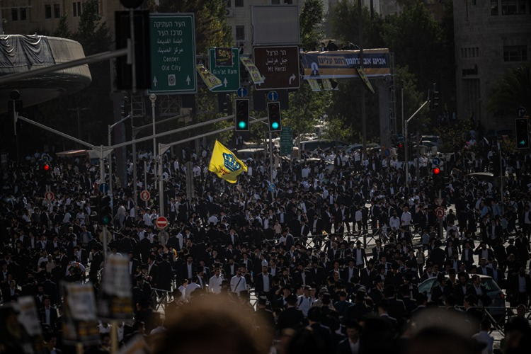 İsrail'deki Haredi topluluğu tarafından, askerlikten muafiyet sağlayacak bir yasa talep eden ve askerlik görevine karşı çıkan on binlerce kişi, ülkenin çeşitli yerlerinden Batı Kudüs'teki Yitzhak Navon tren istasyonunda bir araya geldi.