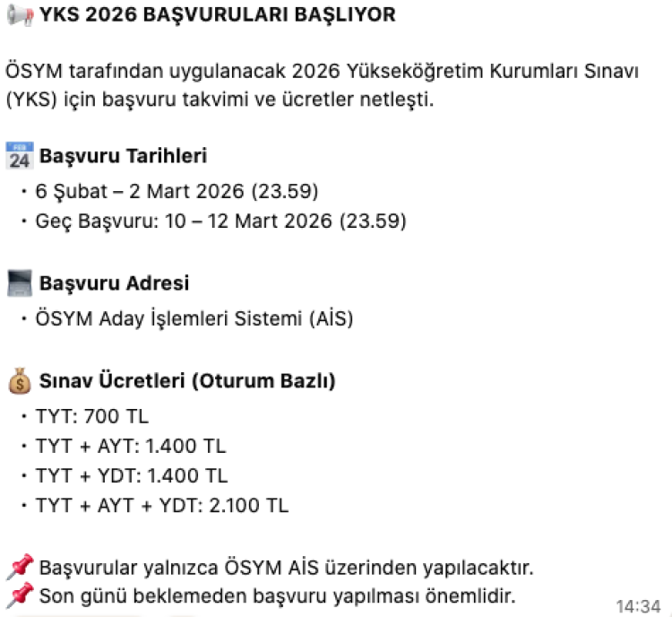 YKS, Türkiye’de yükseköğretime geçişin en belirleyici aşamalarından biri olmayı sürdürüyor. Eğitim uzmanlarına göre başvuru sürecinin başlamasıyla birlikte adayların sınav stratejilerini netleştirmesi, çalışma programlarını güncellemesi ve psikolojik hazırlıklarını güçlendirmesi büyük önem taşıyor. Üniversite hayali kuran yurttaşlar için bu süreç, yalnızca bir sınav değil aynı zamanda geleceklerini şekillendirecek önemli bir dönüm noktası olarak görülüyor.