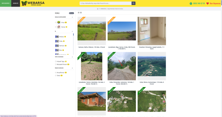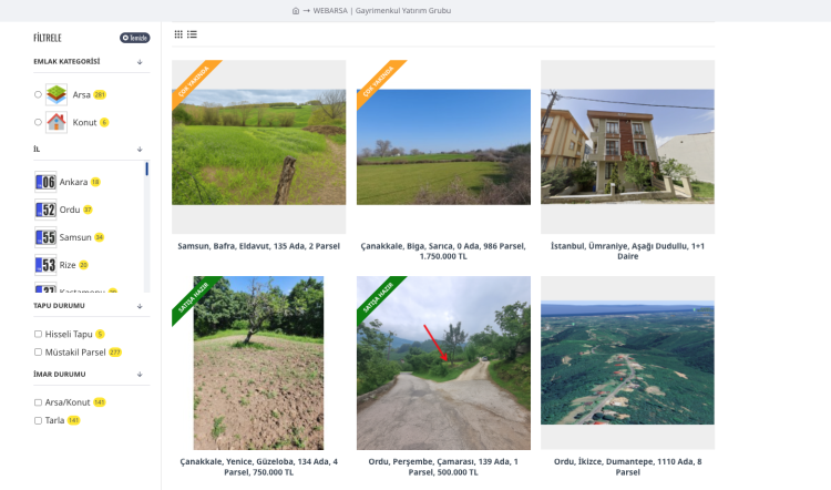 WEBARSA, Samsun, Antalya, Trabzon, Ankara gibi stratejik bölgelerde konumlanan müstakil arsaları, imarlı tarlaları, fındık–çay bahçeleri ve asfalt cepheli arazileri portföyünde birleştirerek yatırımcılara sunuyor. Şirketin ürünleri arasında 2 kat konut imarlı tarlalar ve %0–30 eğimli, yol ve merkeze yakın parseller öne çıkıyor. Yatırımcılar, platform üzerinden TKGM parsel sorgu linkleri, video incelemeleri ve resmi belge kontrollerine erişebiliyor.
