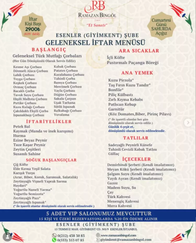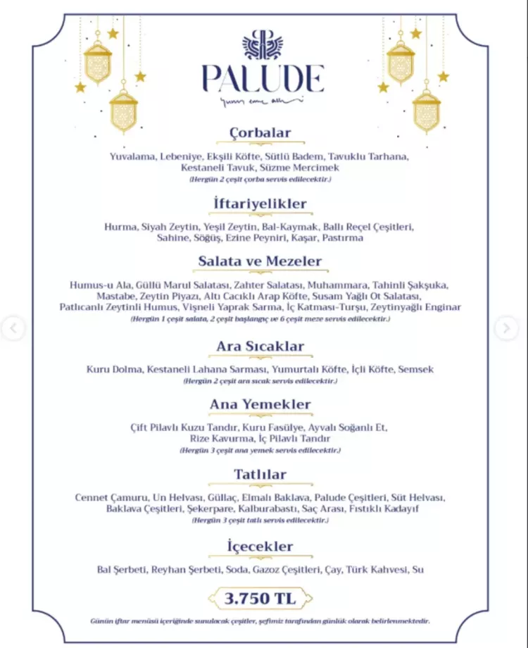 Ramazan ayının başlamasıyla restoranlar iftar menülerini duyurdu. Büyükşehirlerde kişi başı fiyatların 2.500–3.000 TL aralığına yükselmesi sosyal medyada tartışma başlattı.