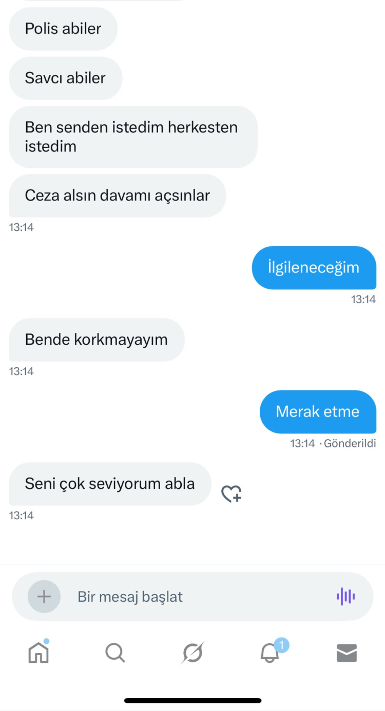 11 yaşında bir kız çocuğu, “Babam beni istismar etti, kimse bana inanmadı. Abla, yardım et” sözleriyle gazeteci Özge Demir’e ulaştı. Küçük kızın mesajı, annesinin daha önce Demir’e aktardığı tehdit iddialarını doğrular nitelikteydi. Anne, aylardır ölüm tehdidi aldığını, karşı tarafın polis olduğunu söylemiş, devlet tarafından farklı şehirlere taşınmasına rağmen her defasında bulunduğunu aktarmıştı.