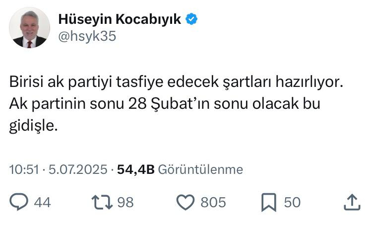 "Birisi AK Parti'yi tasfiye edecek şartları hazırlıyor. AK Parti'nin sonu 28 Şubat’ın sonu olacak bu gidişle."