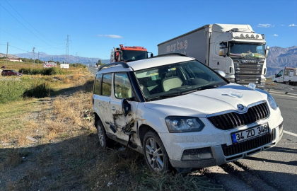 Çarpmanın etkisiyle kamyon refüjü aşarak karşı şeride geçip yol dışına devrildi.