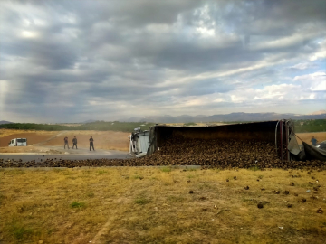 F.A. idaresindeki 44 FA 442 plakalı pancar yüklü kamyon, Malatya Havaalanı Bulvarı Özalper Mahallesi yakınlarında sürücüsünün direksiyon hakimiyetini kaybetmesiyle devrildi.