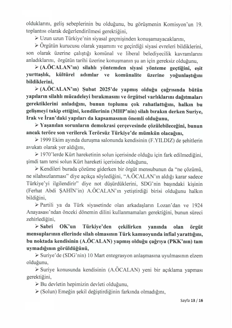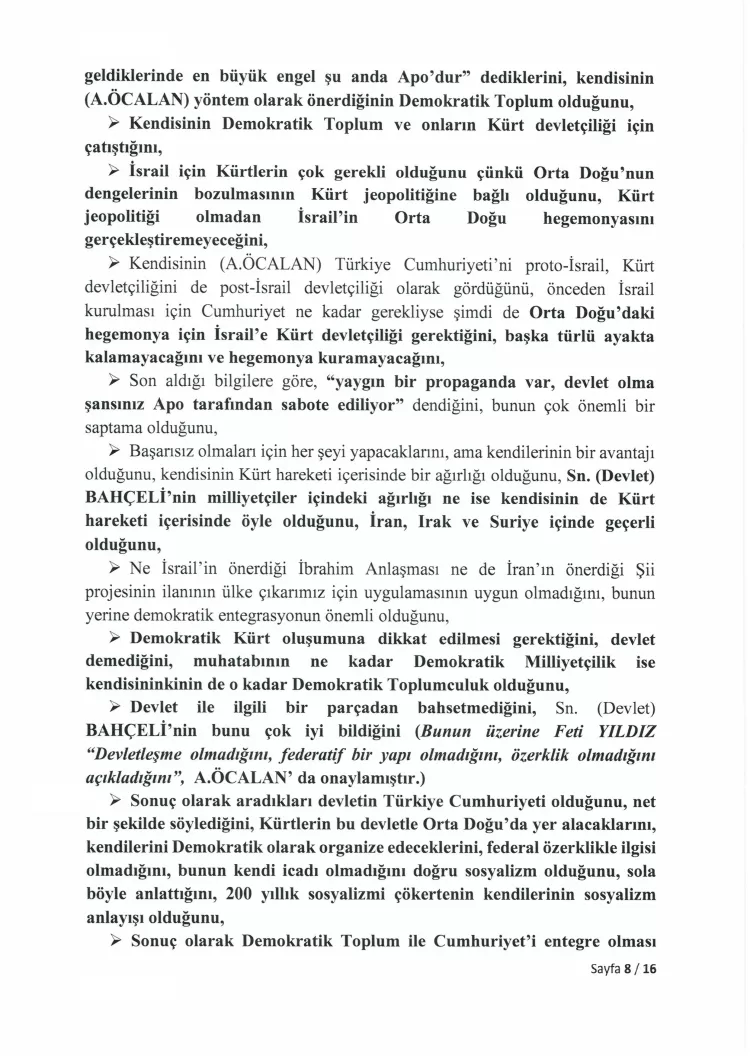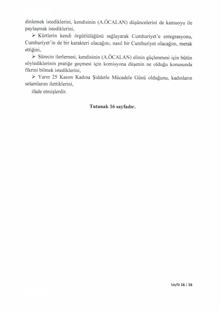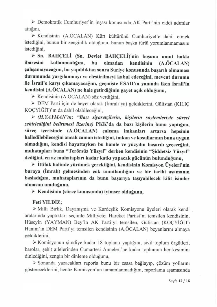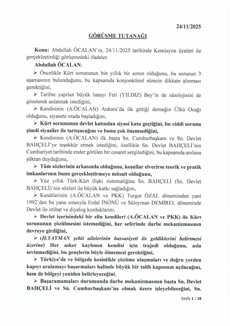 Yayımlanan 16 sayfalık tutanak, İmralı görüşmesine dair bugüne kadar kamuoyuna yansıyan en kapsamlı resmi belge olma özelliği taşıyor.