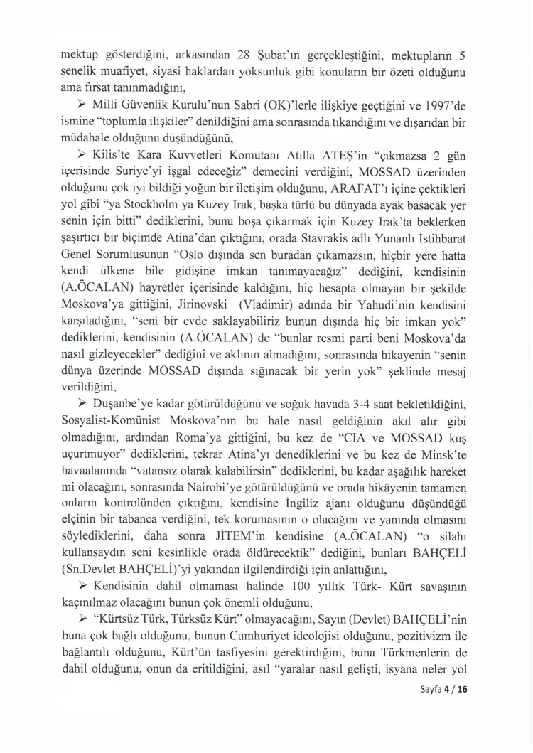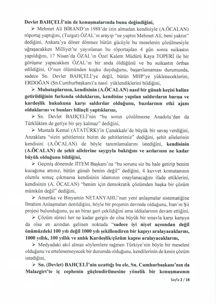 Tutanakta, Abdullah Öcalan’ın geçmişine dair yaptığı değerlendirmelerden biri olarak “Siyasete Ülkü Ocakları’nda başladım” ifadesinin yer aldığı görüldü. Ayrıca Öcalan’ın, MHP Genel Başkanı Devlet Bahçeli hakkında kullandığı ifadeler de metne yansıdı.