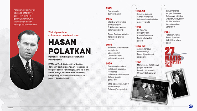 Türkiye demokrasi tarihine kara bir sayfa olarak geçen 27 Mayıs 1960 darbesinin ardından Yassıada’da yargılanarak idama mahkûm edilen Başbakan Adnan Menderes, Dışişleri Bakanı Fatin Rüştü Zorlu ve Maliye Bakanı Hasan Polatkan’ın ölümünün üzerinden 64 yıl geçti.