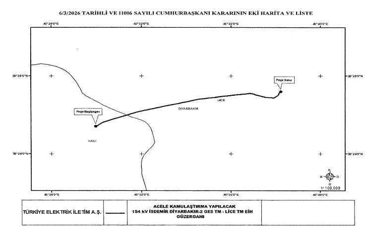 Resmî Gazete’de yayımlanan karar doğrultusunda Diyarbakır’ın bazı mahallelerinde enerji iletim hattı kurulması planlanıyor. Proje kapsamında hattın geçeceği güzergâhta bulunan taşınmazların hızlı şekilde kamulaştırılması için acele kamulaştırma yöntemi uygulanacak.