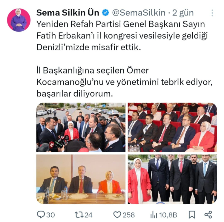 Gelecek Partisi milletvekili Sema Ün'ün Yeniden Refah Partisi Denizli kongresinde Fatih Erbakan ile yanyana oturması Sema ün YRP'ye geçiyor hakkındaki kulisleri daha da hareketlendirdi.