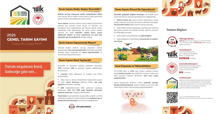 Veri toplama sürecinin sağlıklı yürütülebilmesi için tüm il ve ilçe merkezlerinde sayım büroları kuruldu. Bu bürolar aracılığıyla tarımsal işletmelerin; hayvan varlığı, ekipman ve makine durumu, üretim modeli gibi detaylı bilgileri derlenecek. Sayım sonuçları, tarımsal destekler, yatırımlar ve planlamalar açısından önemli bir veri tabanı oluşturacak.