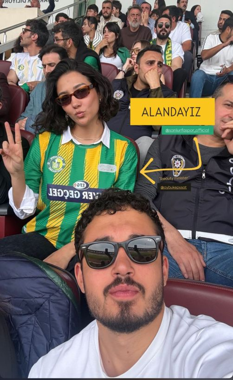 Oyuncular İlhan Şen ve Aybüke Pusat’ın yanı sıra İsmail Eren Demircan, Mert Doğan ve Emre Bulut da karşılaşmayı statta izledi.
