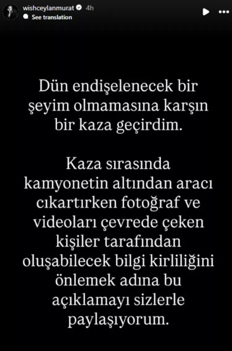 Ceylan, kazanın nasıl gerçekleştiğine dair bir detay paylaşmazken, takipçileri paylaşıma binlerce "geçmiş olsun" mesajı ile karşılık verdi.