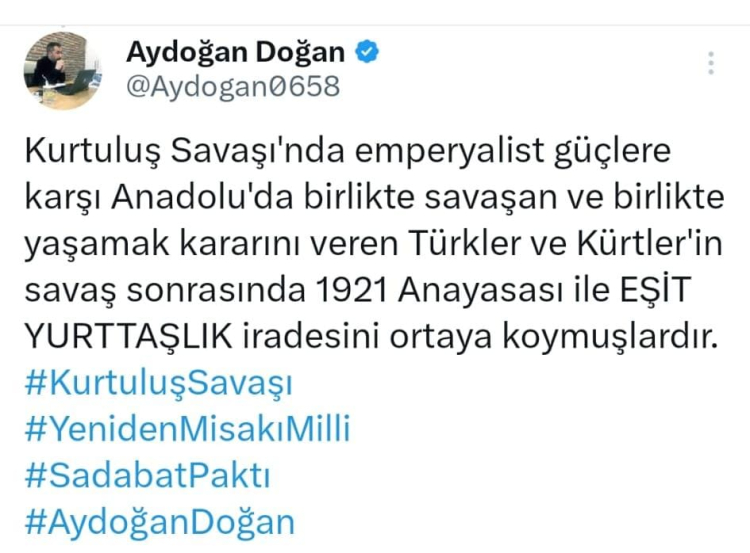Doğan, Türklerin ve Kürtlerin Kurtuluş Savaşı'ndan bu yana birlikte yaşama iradesi gösterdiğini ve 1921 Anayasası ile bu birlikteliğin hukuki zemine oturtulduğunu hatırlattı. Ancak 1924 Anayasası ile bu iradenin yok sayıldığını belirten Doğan, “100 yıldır iki kardeş halk birbirine düşman edilmeye çalışılıyor.” dedi.