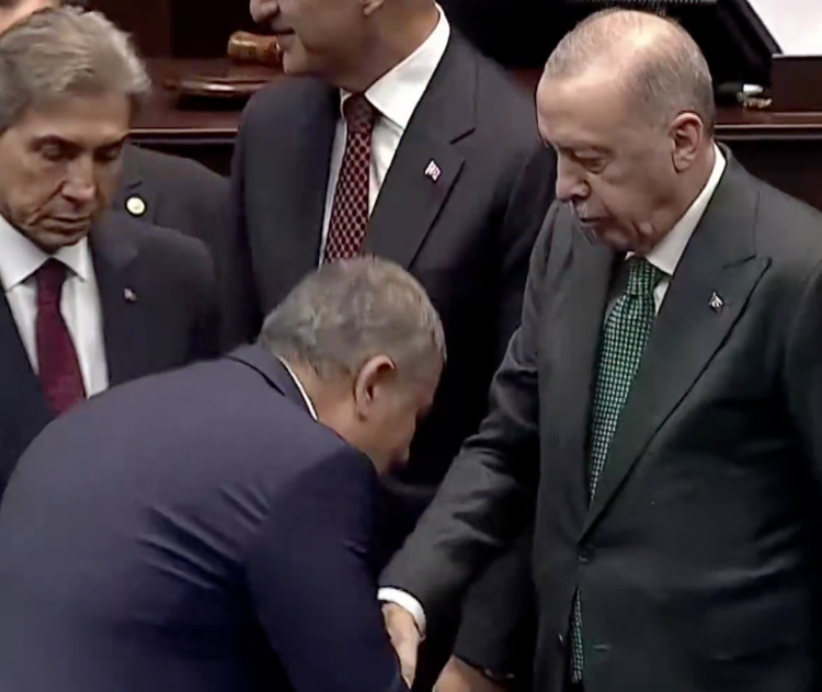 Rozet töreninde Yıldırım’ın Erdoğan’ın elini öpmek için eğilmesi toplantı salonunda kısa süreli bir şaşkınlık yarattı. Erdoğan, elini hızla geri çekerek buna izin vermedi ve ikili yalnızca el sıkıştıktan sonra poz verdi.