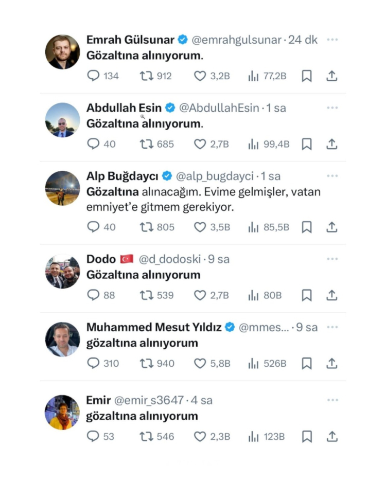 Bu süreçte polis ablukasına tepki gösteren ve destek çağrısı yapan bazı sosyal medya fenomenlerinin evlerine baskın düzenlendi. Gözaltına alınan kişiler, durumu X üzerinden duyurdu.