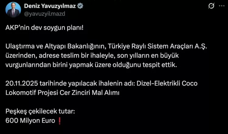CHP’li Deniz Yavuzyılmaz’ın “600 milyon euroluk vurgun planı” ve “adrese teslim ihale” suçlamaları, ihale dosyaları ve teknik kayıtlarla tek tek incelendi; tüm iddiaların gerçek dışı olduğu ortaya kondu.