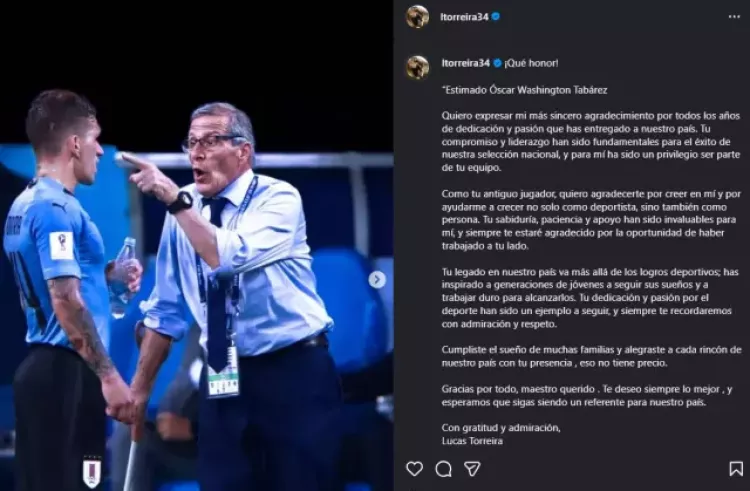 Bielsa’nın açıklamalarının hemen ardından Lucas Torreira, sosyal medya hesabından eski Uruguay teknik direktörü Oscar Washington Tabárez için duygusal bir teşekkür mesajı yayımladı.