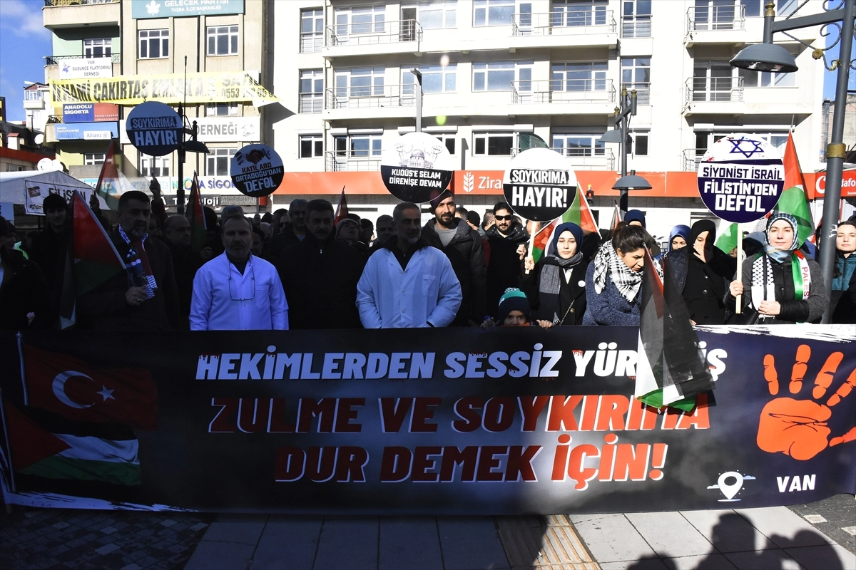 VAN (AA) - Van'da sağlık çalışanları, İsrail'in Gazze'ye yönelik saldırılarına tepki gösterdi.