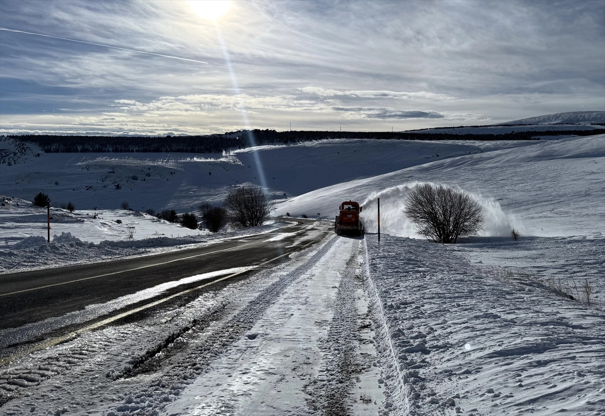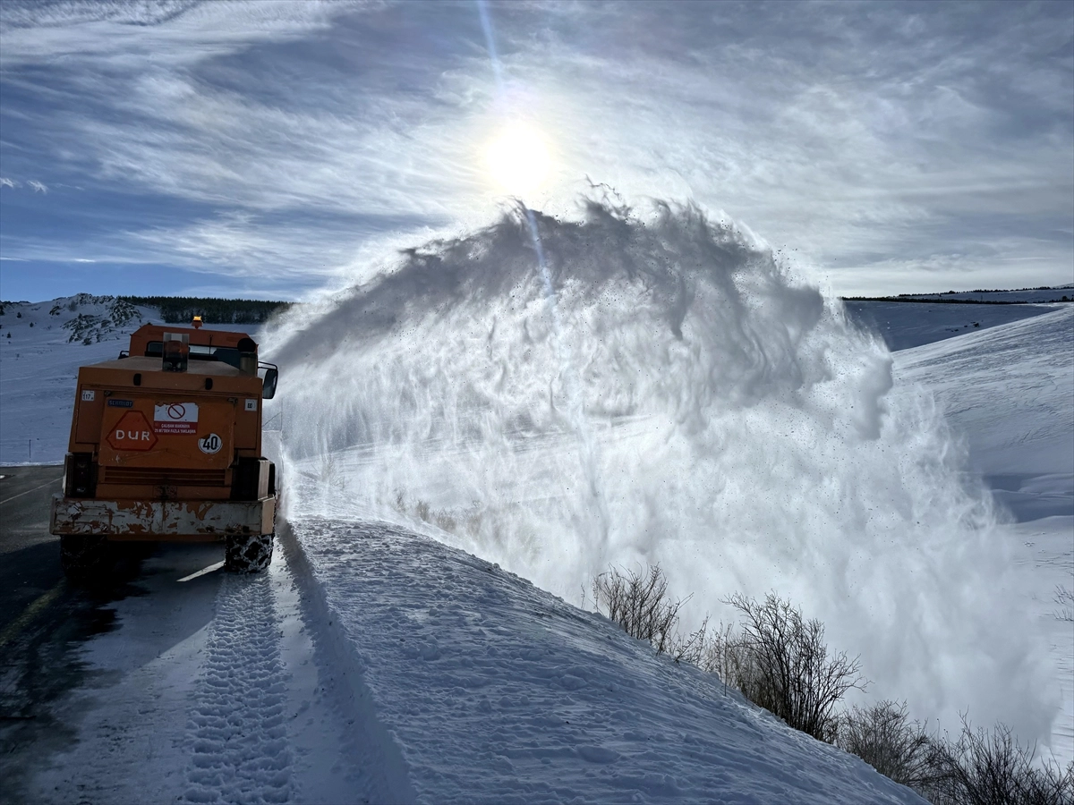 Soğuk havaya rağmen Karayolları ve Özel İdare ekipleri, bazı noktalarda kar püskürtme (rotatif) aracı ile çalışma yaptı.