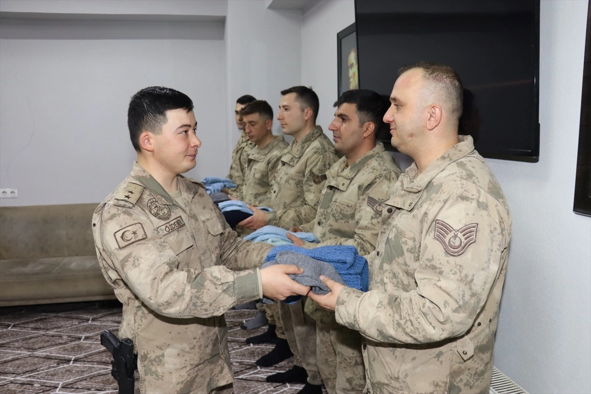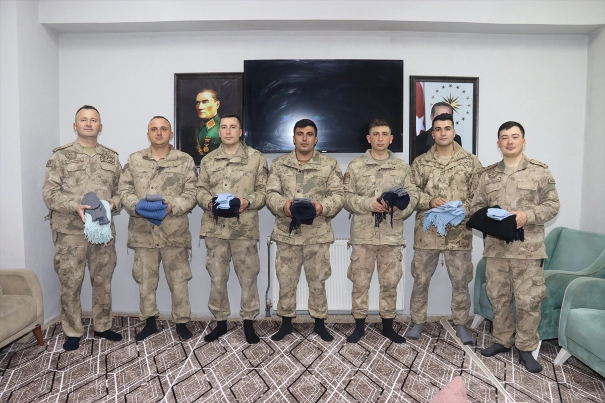 İl Jandarma Komutanlığınca teslim alınan çorap ve atkılar, üs bölgesinde görevli jandarma personeline dağıtıldı.