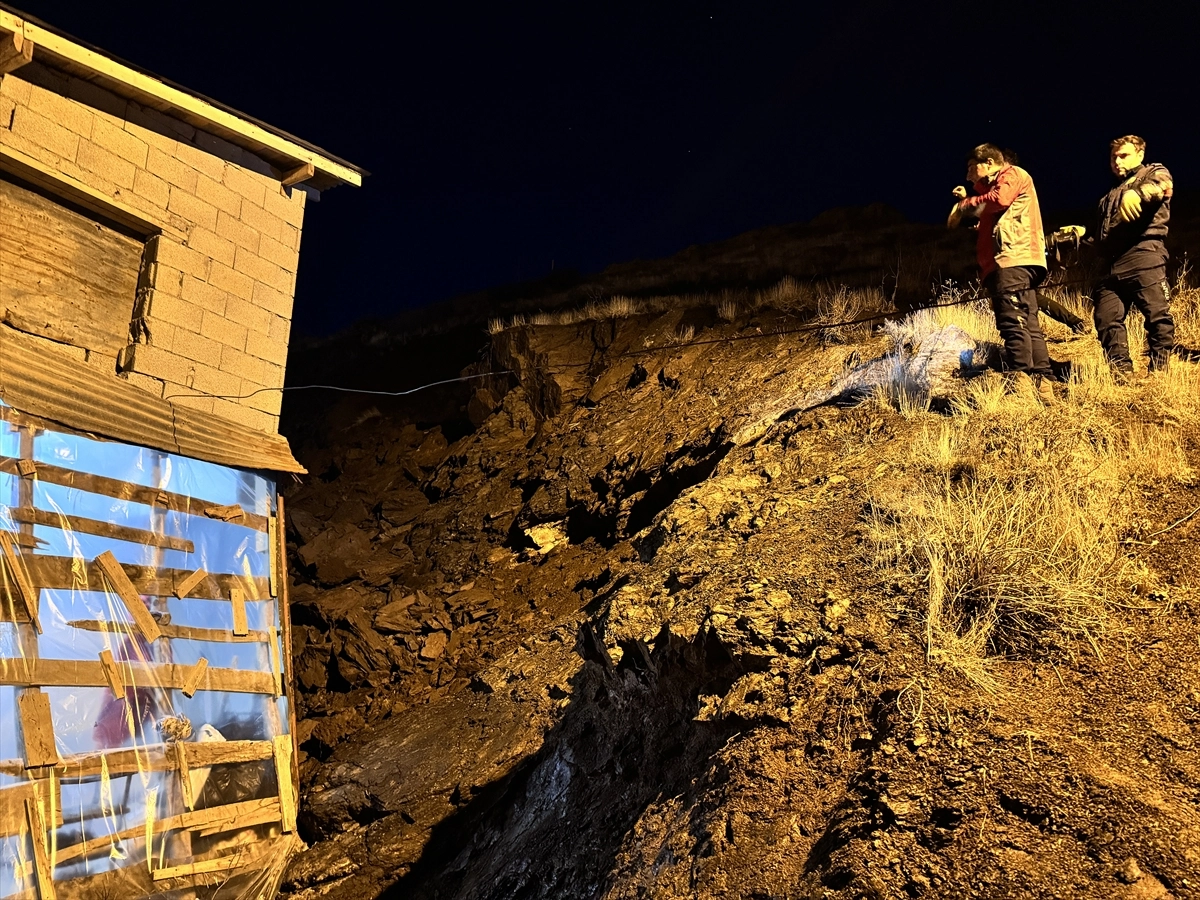 HAKKARİ (AA)Keklikpınar Mahallesi'nde heyelan nedeniyle tepeden düşen kaya parçaları, Emin Yakın'a ait evin arka bölümüne isabet etti. Bazı duvarların hasar gördüğü evdeki aile bireyleri, gürültü üzerine endişeyle dışarı kaçtı. İhbar üzerine olay yerine AFAD, polis, itfaiye ve sağlık ekipleri sevk edildi. Ev, tedbir amaçlı boşaltıldı, güvenlik önlemi alan polis, çevredekileri uzaklaştırdı. Ekipler, ev ve kayaların düştüğü bölgede inceleme yaptı. Ev sahibi Yakın, gazetecilere, evde büyük gürültü duyduklarını ve ilk anda deprem olduğunu düşündüklerini belirterek, şunları kaydetti: "Eşim ev işleri yapıyordu. Aniden ses duyduk. Çocuklarım çok korktu. Büyük kızım bayılacak gibi oldu. Ondan sonra çocukları dışarıya çıkardım. Çok şükür kimseye bir şey olmadı. Evin arka tarafındaki duvarlar hasar gördü. Bir tane engelli oğlum var. Ben o sırada ona koştum. Komşular da geldi yardım etti." Yakın, olay sebebiyle zor durumda kaldıklarını anlatarak, yetkililerden destek istedi.