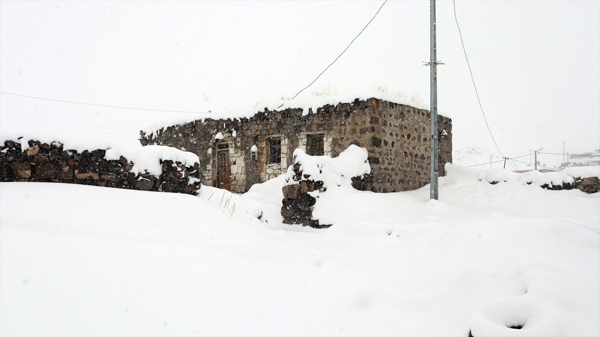 Karın yanı sıra tipinin de etkili olduğu dağ köylerinde evlerin çevresi karla kaplandı.