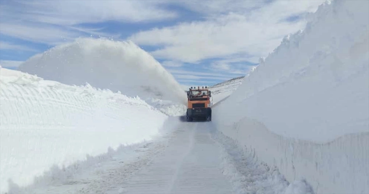 Kar kalınlığının yer yer 5 metreye ulaştığı bölgede zor şartlarda çalışma yürüten görevliler, uzun uğraşlar sonucu yolu açtı.