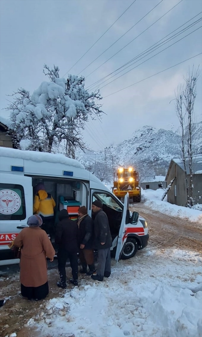 HAKKARİ (AA) - Hakkari'nin Şemdinli ilçesinde yolu kardan kapanan mezrada rahatsızlanan hasta, ekiplerin çalışmasıyla hastaneye ulaştırıldı.