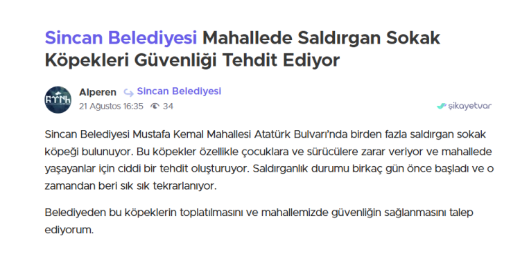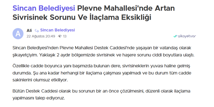 Sincan Belediyesi’nin resmi şikayet platformlarına da benzer sorunlar yansıyor.