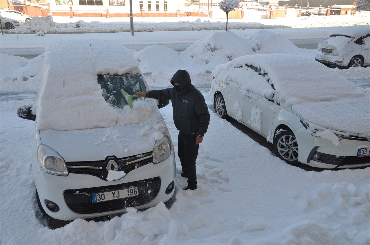 Kar kalınlığının 40 santimetreyi bulduğu Yüksekova ilçesinde vatandaşlar, araçlarının üzerinde, ev ve iş yerlerinin önünde biriken karları temizledi.